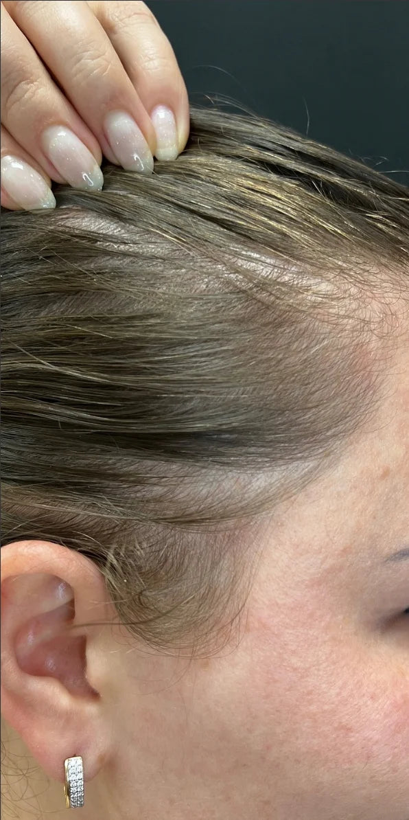 See tiny new hairs sprouting along your hairline and part. These "baby hairs" signal your follicles are responding to the increased nutrients and reduced DHT levels.